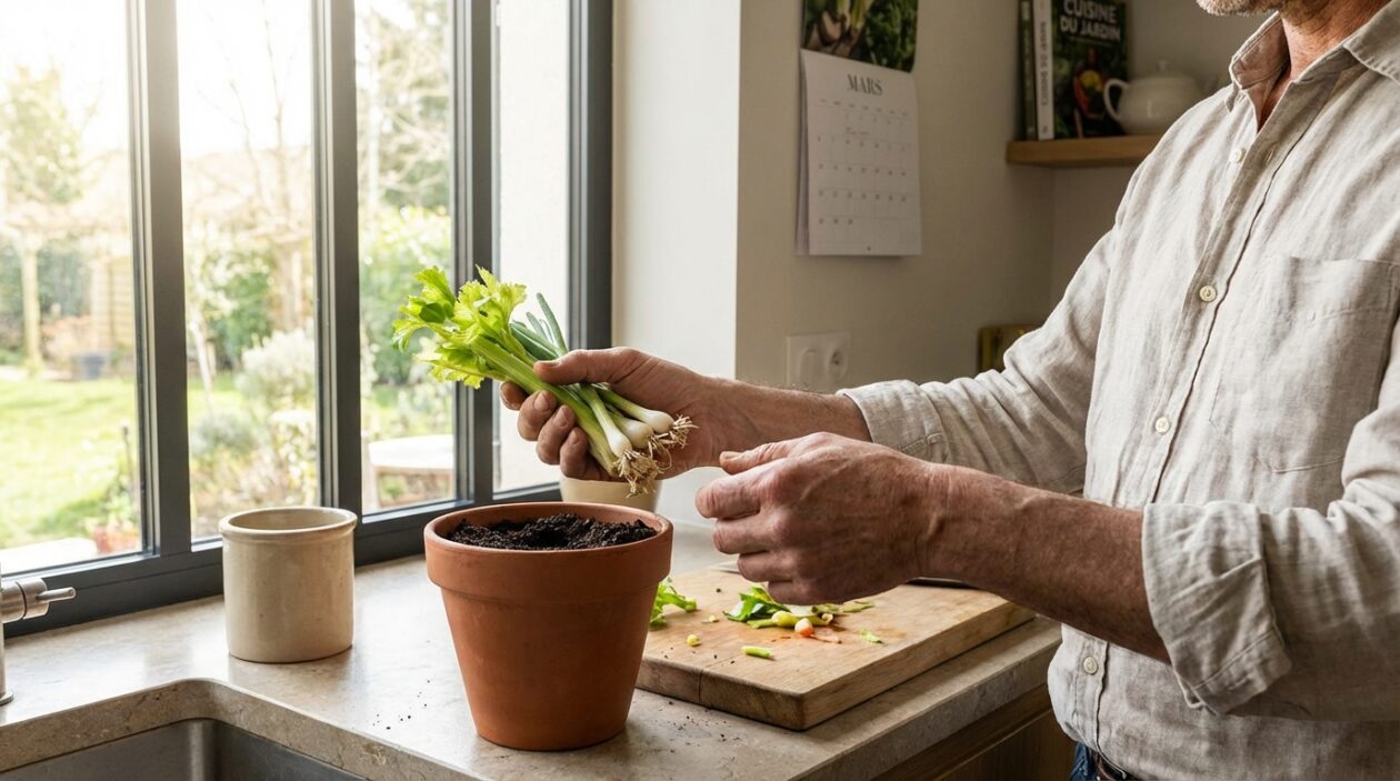 En offrant une simple terre humide et un arrosage régulier à vos bases de ciboule, de céleri ou d’oignons nouveaux, vous avez stoppé le cycle du déchet pour lancer celui de l’abondance. Cette méthode simple, qui permet de sauver une grande quantité de restes chaque mois grâce à quelques gestes de préparation et d’entretien, prouve qu’un véritable potager autonome commence souvent sur le bord de notre propre évier. L’heure de la prochaine préparation du dîner approchant, ne serait-ce pas le moment idéal de regarder différemment vos épluchures et de donner vie à votre tout premier potager d’intérieur perpétuel ?