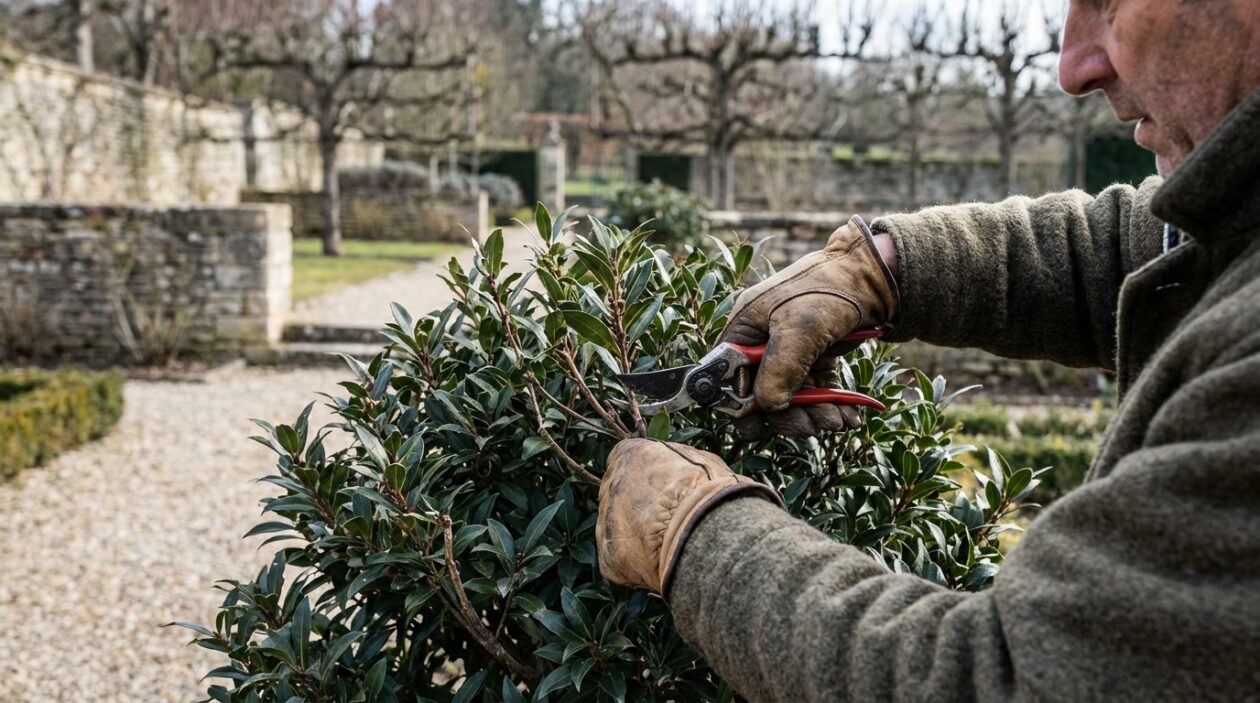 Tous les arbustes ne sont pas logés à la même enseigne en cette saison. Si les caducs sont encore nus, ce sont les arbustes à feuillage persistant qui réclament toute votre attention. Ces végétaux, véritables piliers de la structure du jardin, assurent le décor tout au long de l’année. Pourtant, ils ont tendance à se dégarnir de la base ou à devenir disproportionnés s’ils ne sont pas entretenus avec rigueur. Les lauriers-tin, photinias, osmanthus et eleagnus sont les élus de la saison. C’est sur eux que doit se porter votre effort pour garantir un résultat visuel impeccable.