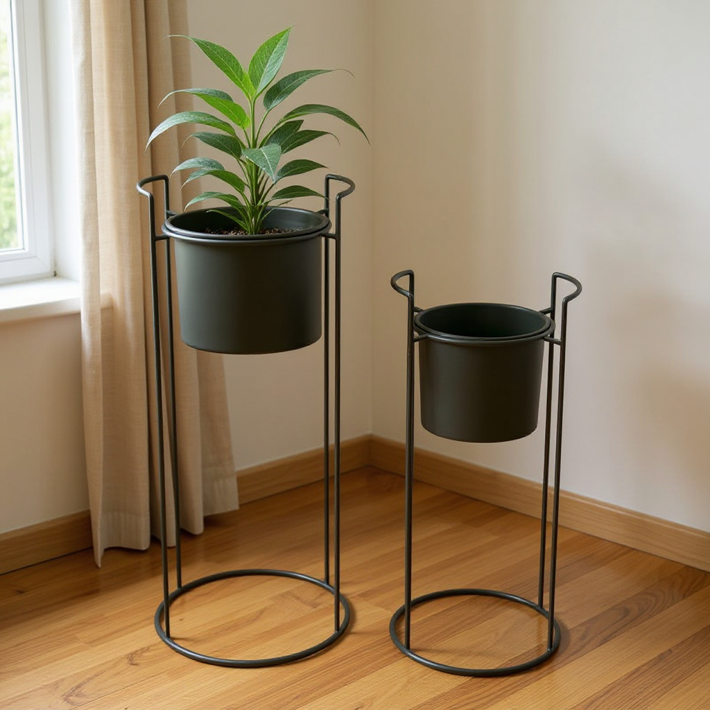 Deuxième avantage : la mise en scène. Avec un piètement, l’effet “mini jungle” arrive plus vite, car on crée des niveaux sans efforts. Même avec seulement deux plantes, on obtient un résultat plus travaillé qu’avec deux pots posés par terre.