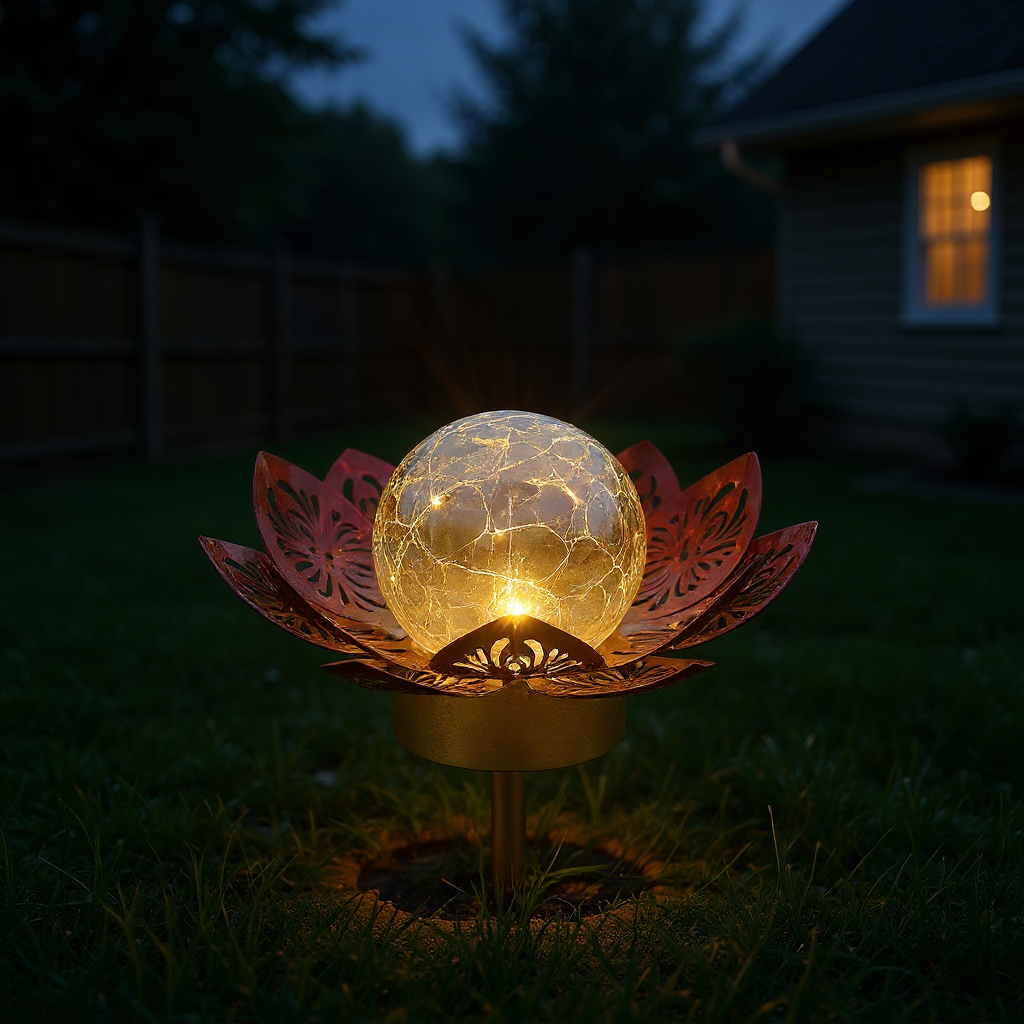 Minutieusement pensée, la fleur solaire associe judicieusement trois matériaux distincts : iron, plastic et glass.