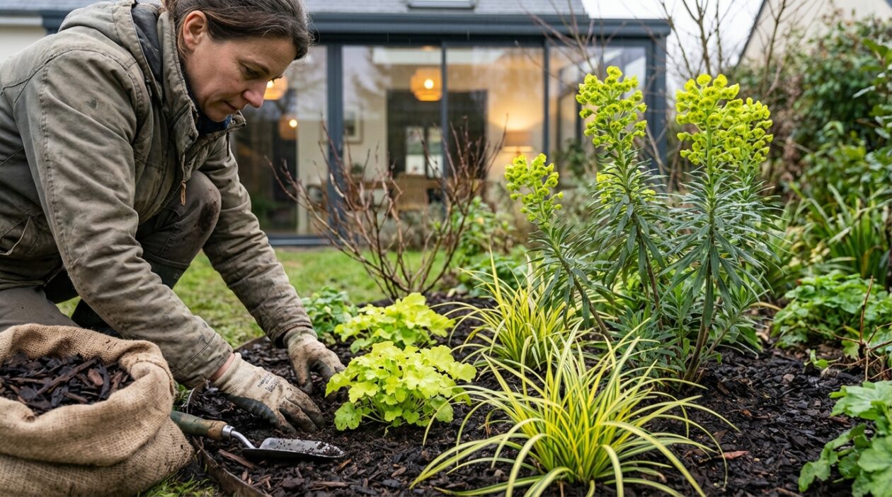 En mariant les éclats vifs de l’heuchère lime et du carex panaché à la structure imposante de l’euphorbe characias, l’esthétique du jardin entre dans une nouvelle dimension. Disposés en petits groupes impairs avec l’espacement idéal, puis protégés par leur épais manteau organique, ces végétaux promettent un spectacle continu et haut en couleurs. L’art du relief est à la portée de tous, transformant une terre engourdie en un manifeste botanique d’avant-garde. C’est finalement la garantie d’un aménagement audacieux qui incitera quiconque croise vos parterres à s’arrêter pour en admirer chaque détail microscopique, ouvrant peut-être la voie à des échanges horticoles inattendus autour d’un simple bout de clôture.