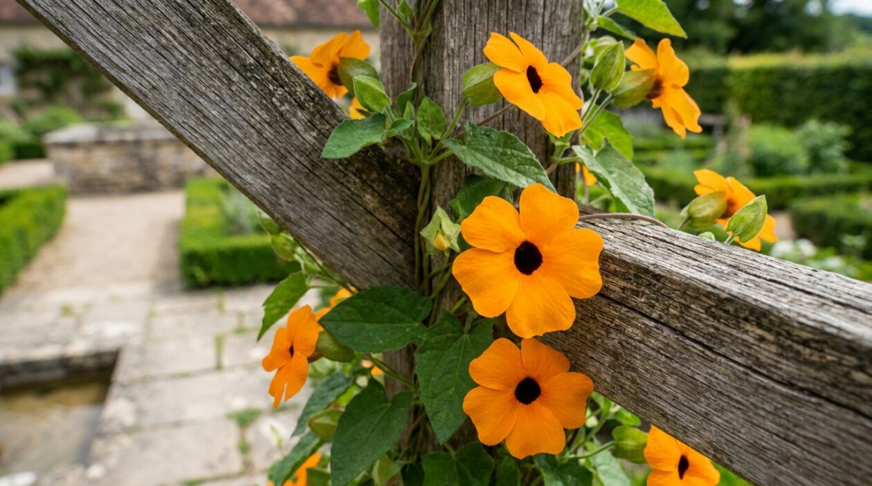 C’est souvent l’exaspération qui pousse aux meilleures découvertes. Chercher une alternative pour cacher temporairement un poteau disgracieux peut mener vers des variétés souvent méconnues du grand public. En flânant dans les rayons d’une jardinerie ces jours-ci, une petite plante aux fleurs lumineuses attire souvent le regard : la Suzanne-aux-yeux-noirs, botaniquement nommée Thunbergia alata. Habituellement reléguée au rang de petite plante de balcon, cette liane a pourtant un potentiel de développement ahurissant lorsqu’on lui donne l’espace nécessaire.