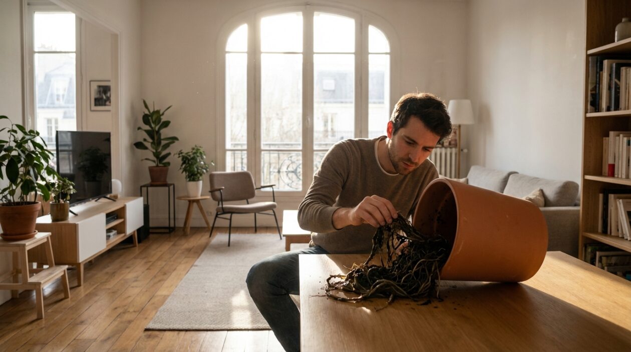 Les plus belles plantes d’intérieur dépérissent parfois mystérieusement les unes après les autres, laissant les amateurs de verdure dans une incompréhension totale. Arrosage régulier, lumière tamisée, engrais naturel minutieusement dosé : tout semble absolument parfait en surface, comme le recommandent les meilleurs manuels d’horticulture. Pourtant, les feuilles jaunissent tristement, s’affaissent lamentablement, et la terre reste curieusement lourde et froide sous les doigts. Pourquoi ce terrible désastre végétal s’acharne-t-il sur de magnifiques spécimens tropicaux ? En ce début de printemps gai et ensoleillé, saison idéale pour faire le tour des enseignes de jardinage à la recherche des nouveautés et des promotions du moment, il suffit parfois de retourner un seul pot récalcitrant pour que la vérité éclate. Ce qui se cache au fond du contenant fait instantanément comprendre l’ampleur redoutable du problème.