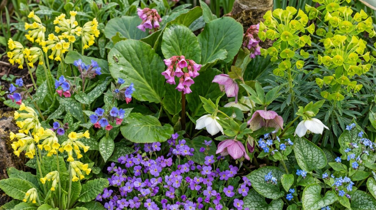 Dès les jours cléments d’avril, le résultat sera saisissant. En combinant l’ingénieux feuillage imposant du bergenia avec l’architecture monumentale de l’euphorbe, le tout tapissé par les flamboyances jaunes, violettes et bleutées des primevères, de l’aubriète et de la pulmonaire, vous court-circuitez littéralement l’attente du printemps. L’harmonie visuelle est acquise quasiment instantanément, changeant la tristesse hivernale en un festival de couleurs magnifiques.