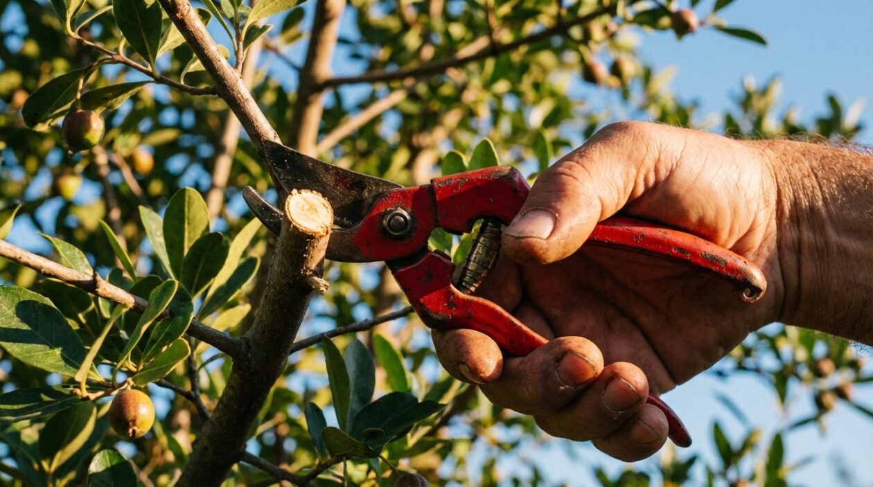 Une fois l’azérolier planté, il faut s’armer d’un sécateur propre et bien aiguisé. L’objectif est d’identifier les tiges les plus robustes nées au cours de la saison précédente. Privilégiez celles qui s’orientent naturellement vers l’extérieur et éliminez impitoyablement les ramifications chétives, malades ou qui poussent de façon raide vers l’intérieur. Cette sélection est la clé de voûte de la taille de formation.